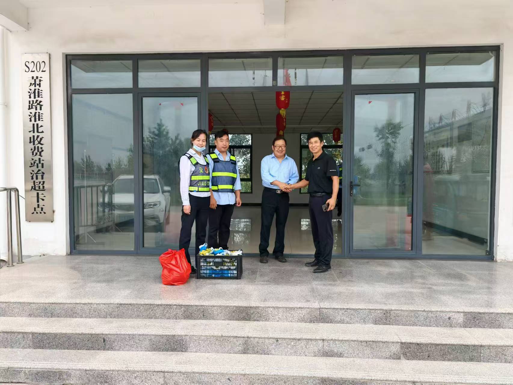 9月8日上午,在中秋佳節(jié)即將來臨之際,臨渙鎮(zhèn)徐廟村黨總支書記、村委會主任徐云奇一行為融通公司S202收費站一線職工送來了慰問品,并致以節(jié)日的問候。