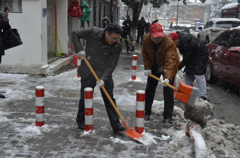 在紀(jì)委書記王獻忠、總經(jīng)理助理朱濤的帶領(lǐng)下,廣大干部職工紛紛拿起鐵鍬、掃帚等工具,不畏嚴(yán)寒,你鏟我掃,相互配合,一點點地將積雪和冰層鏟起清除。盡管大家的臉都凍得通紅通紅,但手中的掃雪工具卻不停地揮舞著,忙得渾身是汗,在歡聲笑語中掃出了暢通的大道,受到過往市民的紛紛稱贊。