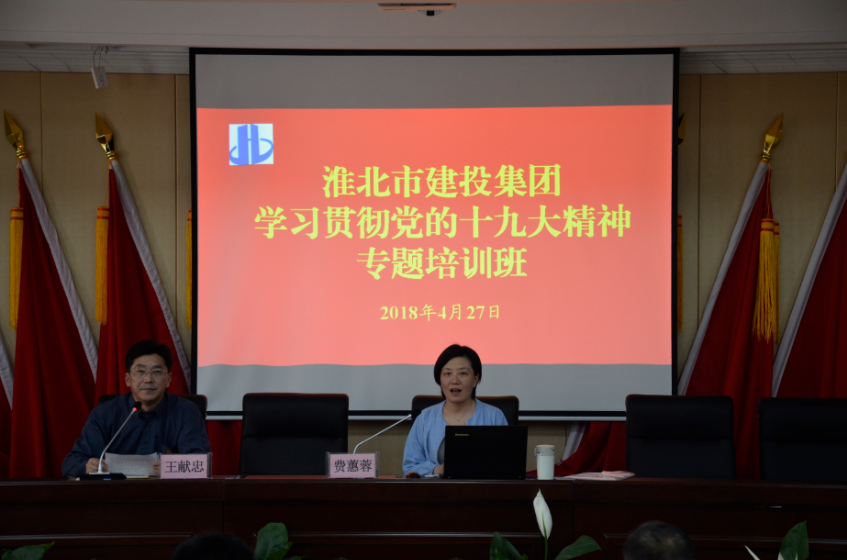 為深入學(xué)習(xí)貫徹黨的十九大精神,4月27日下午,市建投集團(tuán)在五樓會(huì)議室舉辦黨的十九大精神專題培訓(xùn)班?;幢笔形h校校委委員、法學(xué)與管理教研室主任費(fèi)蕙蓉教授為淮北市建投集團(tuán)廣大黨員干部專題解讀了習(xí)近平新時(shí)代中國(guó)特色社會(huì)主義思想和黨的十九大精神,來(lái)自集團(tuán)公司的黨員干部近130人參加了本次專題培訓(xùn)。