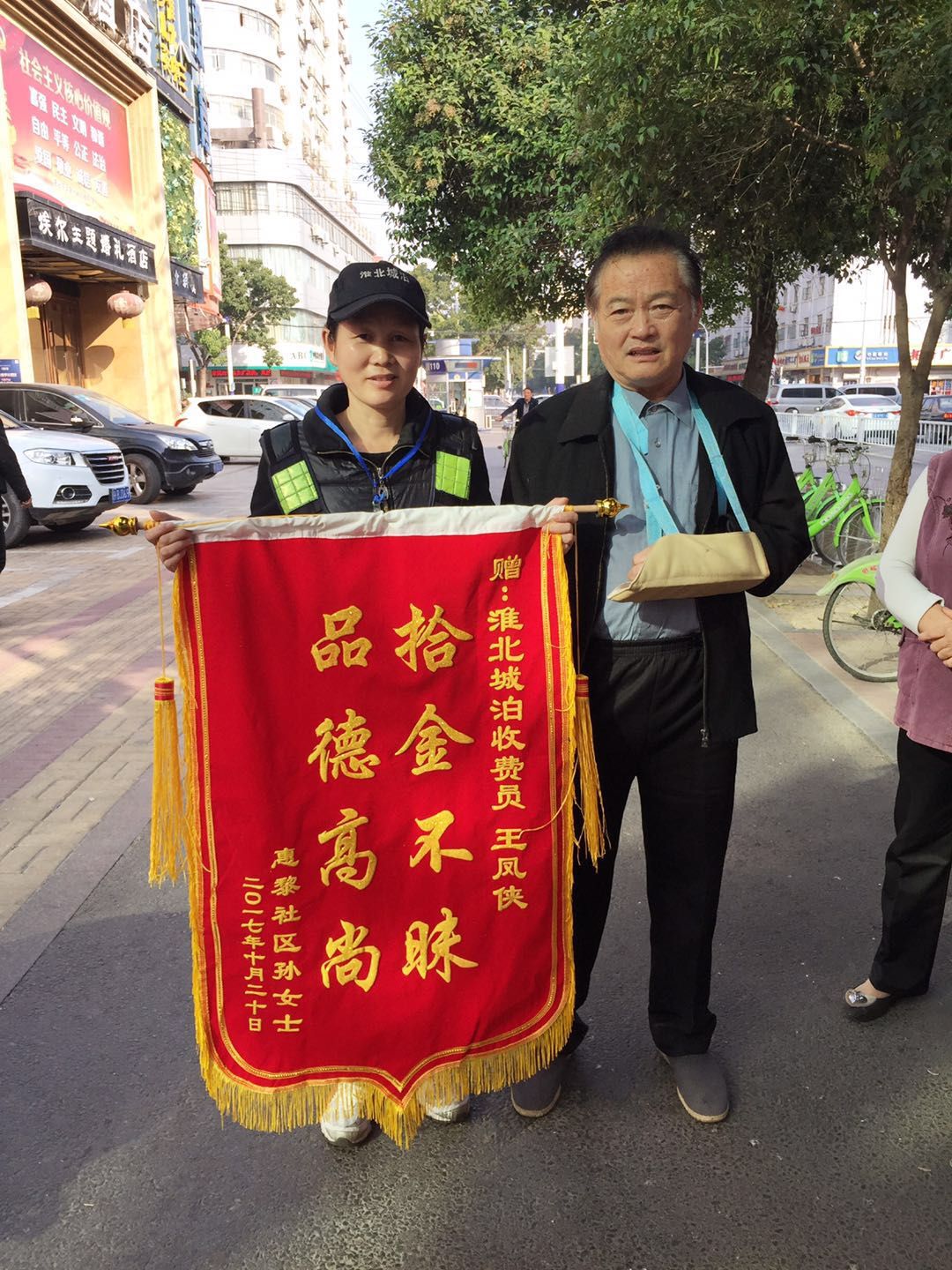 導(dǎo)語:1031日上午,失主王乃志向淮北城市泊車管理有限公司收費員王鳳俠贈送錦旗,衷心感謝!收費員王鳳俠拾金不昧,我被這位普通的收費員高尚的品質(zhì)深深感動。
