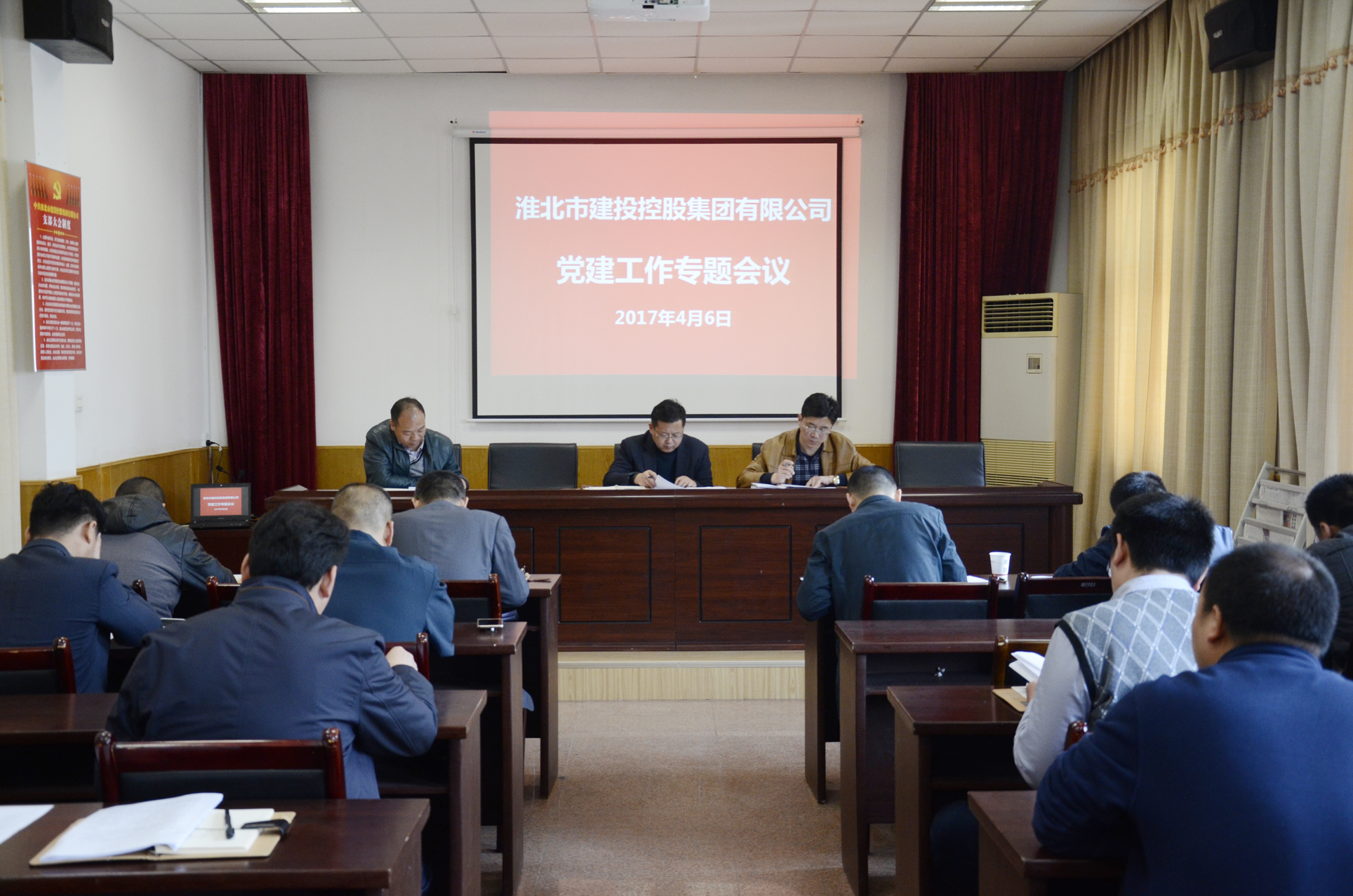 2017年4月6日上午,市建投集團在四樓會議室組織召開2017年度黨建專題工作會議,回顧總結(jié)2016年集團公司黨建暨黨風(fēng)廉政建設(shè)工作,安排部署2017年黨建和黨風(fēng)廉政建設(shè)任務(wù)。集團公司黨委委員、副總經(jīng)理張立哲,黨委委員、紀(jì)委書記王獻忠,黨委組織部、紀(jì)檢監(jiān)察審計部、各黨支部書記和相關(guān)人員參加了會議。
